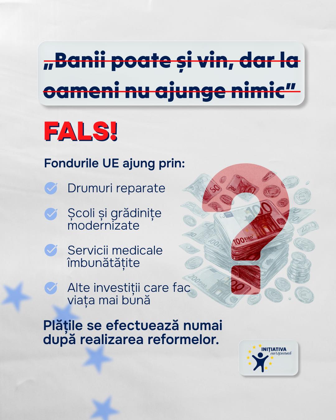 Fondurile europene destinate Republicii Moldova nu „se pierd” pe drum. Chiar dacă banii nu ajung neapărat direct în buzunarul cetățeanului, ei vin sub forma drumurilor reparate, școlilor și grădinițelor modernizate, serviciilor medicale îmbunătățite. Dacă ne referim la asistența oferită prin Planul de Creștere al UE, aceasta este strict condiționată de progresul în implementarea reformelor și […]