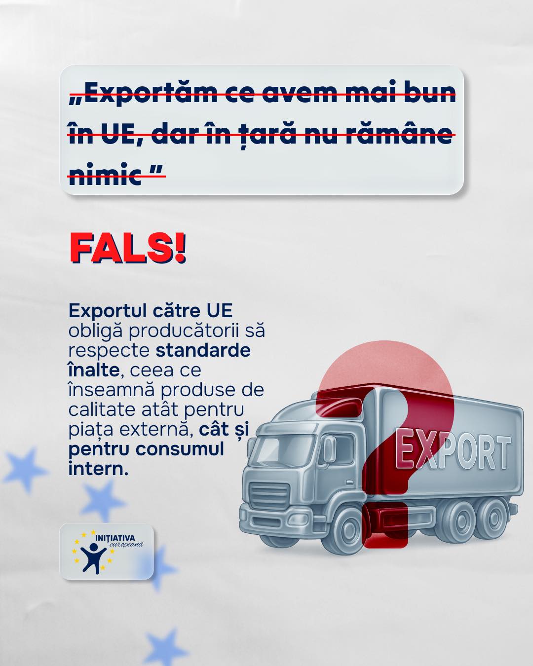 FALS – exportăm tot ce avem mai bun în UE și în țară nu mai rămâne nimic sau doar produse de calitate proastă.